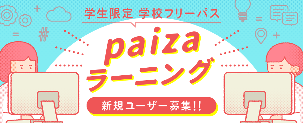 月額1,490円(税込)の「paizaラーニング」を小?中?高?大学?専門学校向けに無料で提供するサービスです。「paizaラーニング」は動画と問題で学べる、就職?転職直接型オンラインプログラミング学習サービスで、全300レッスン、2,300学習動画、4, 800問の演習課題が利用できます。「学校フリーパス」ではそれらのコンテンツをすべて無料で利用できます。受講者は6段階で評価されるプログラミングスキル評価システム「paizaスキルチェック」を受け、その結果をもとに自分のスキルにあった学習をすることができます。